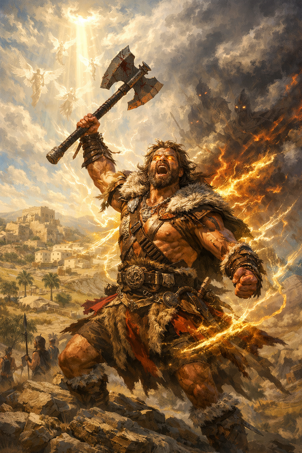 Barbarians channel the raw, untamed power of Aeramor. Many believe their fury is a spiritual resonance: either a righteous zeal stirred by Adonai or a dangerous whisper from the Enemy. Their rage is not merely physical but a clash of unseen powers within the soul.